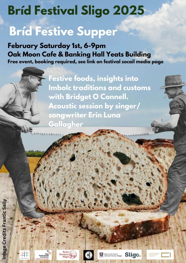 St Brigid Supper. Festive foods, insights into Imbolc traditions and customs, acoustic session by singer/songwriter Erin Luna Gallagher. February Saturday 1st, 6-9pm. Oak Moon Cafe & Banking Hall, Yeats Building, Hyde, Bridge St. Sligo.