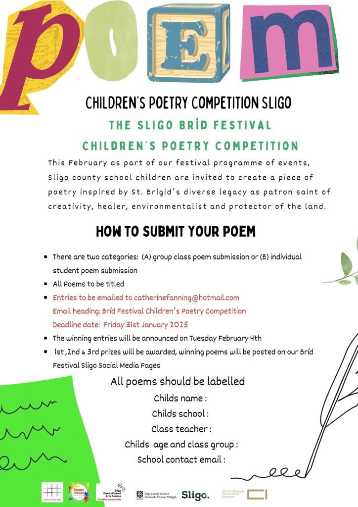 Children’s Poetry Competition Sligo. Deadline date: Friday 31st January