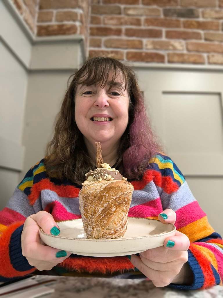 I finally got there yesterday, I’m always early so it was just the breakfast menu on offer, I would have loved to try the French Toast, but that served as brunch, and I’m not sure what time that menu starts. It was all good though, as they have the most amazing Cruffins – a croissant/muffin. I had a Ferrero Rocher one, which was incredible, packed with chocolate and fresh cream, and delicious. I also had a hot chocolate (and was buzzing afterwards!)