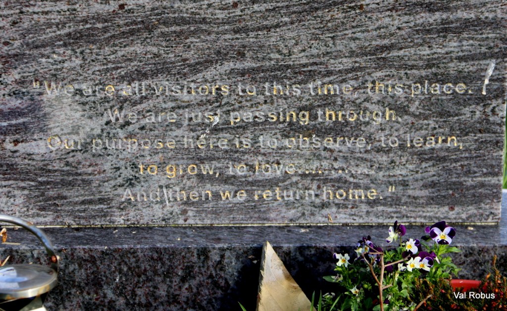“We are all visitors to this time, this place. We are just passing through. Our purpose here is to observe, to learn, to grow, to love…and then we return home.”