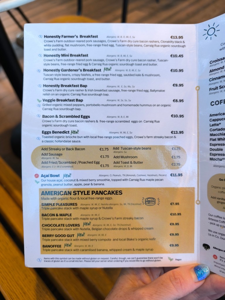 I’m a big fan of Honestly Kitchen; I’ve visited both the Carrick one and the Strandhill one many times. You can read about lunch at the Carrick on Shannon one here. I’m always up and out bright and early, so I was delighted to hear about the new opening hours in Carrick on Shannon.