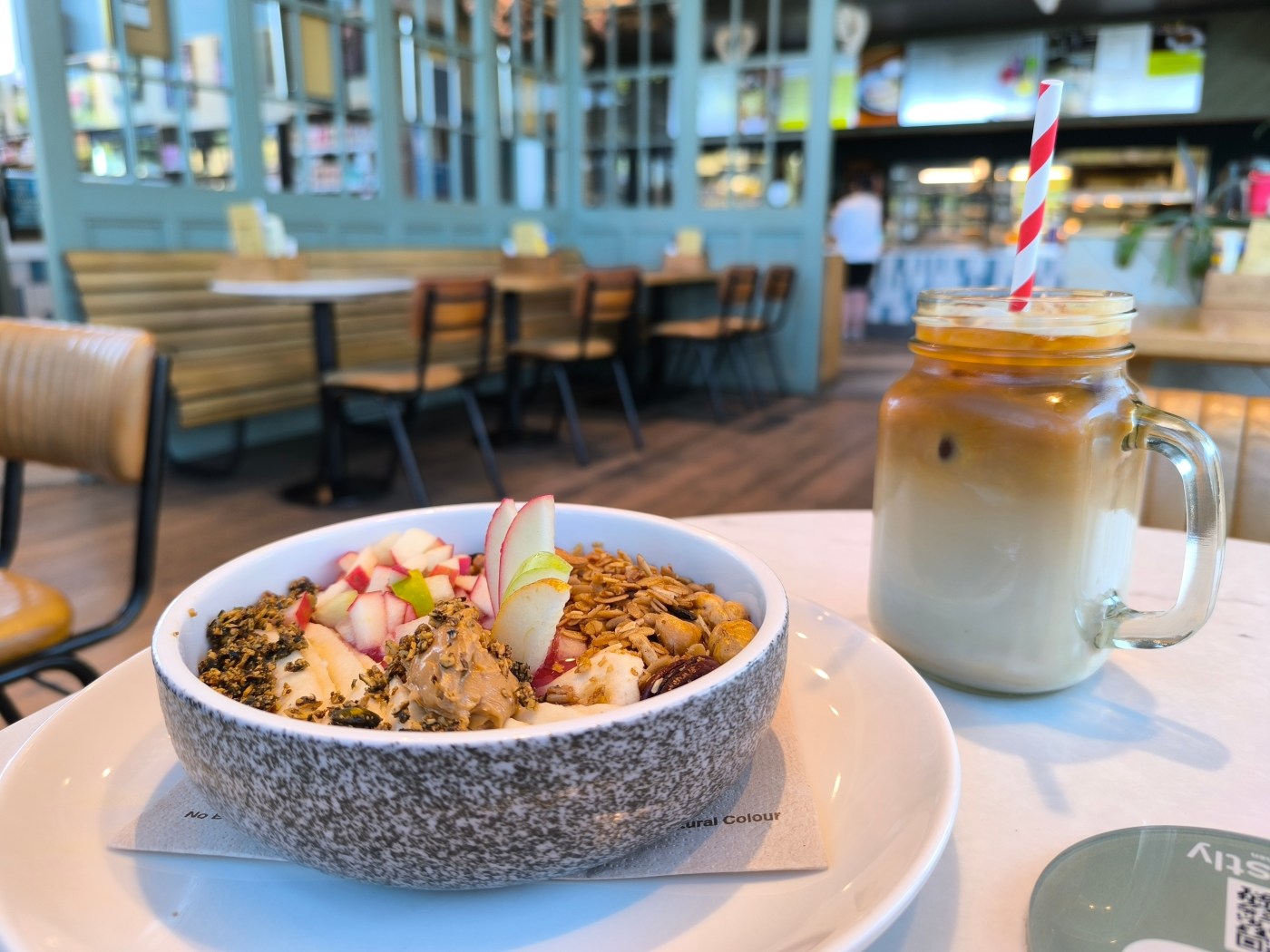 I loved my açai bowl, it was quite different to the ones I usually have as the bases are usually frozen, and this one wasn’t. This meant that I didn’t get brain freeze, and I was able to eat it all in one sitting. It was also served in a proper bowl, not a plastic container, as is usually the case with the açai bowls that I’ve has before. I loved the selection of chopped fruit that was on top of it.
