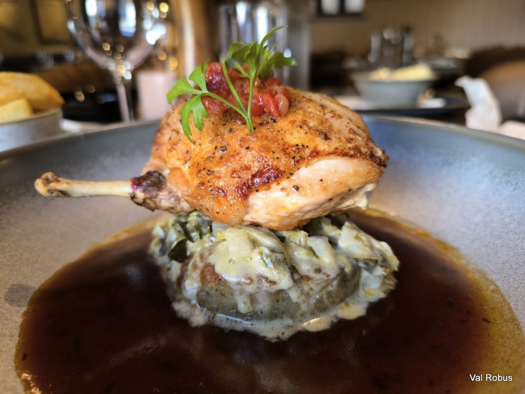 I ordered Chicken Supreme, this was served on top of Potato Rosti and Creamed Cabbage, with Smoked Bacon Mousse, and Tarragon Jus. There was a choice of side dish with this main course, and I went for the creamed potato. It was all incredible, I didn’t think it was possible to dream about chicken skin, but I did! It was so well seasoned, and so crispy, and now I want it again!