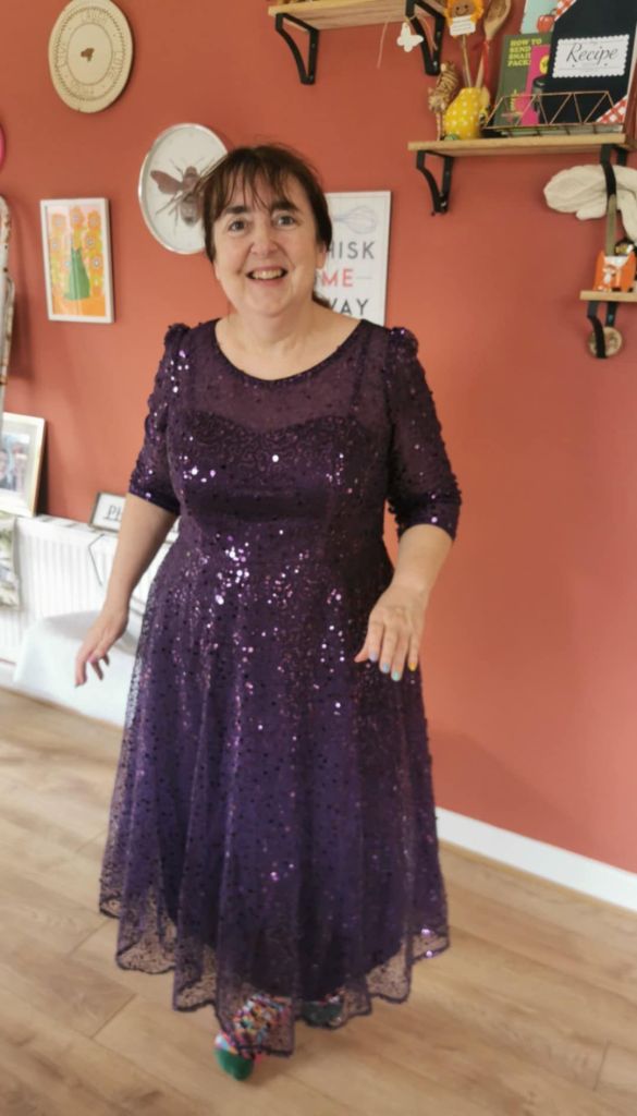 Speaking of clothes, I’m still searching for a mother of the bride outfit. I have a dress that might do, but I don’t want a might do outfit. I want something that I love and that I feel comfortable in. Lucy had ordered a dress for me, and I tried it on, but I looked like a cross between Barney the Dinosaur, and an eight-year-old going to a party. My friend said I look more like a fairy godmother than a mother of the bride! The photo is above (the dress was much darker in real life), anyway that’s not the one for me. I’ve ordered a couple more dresses, so we’ll see what they are like.