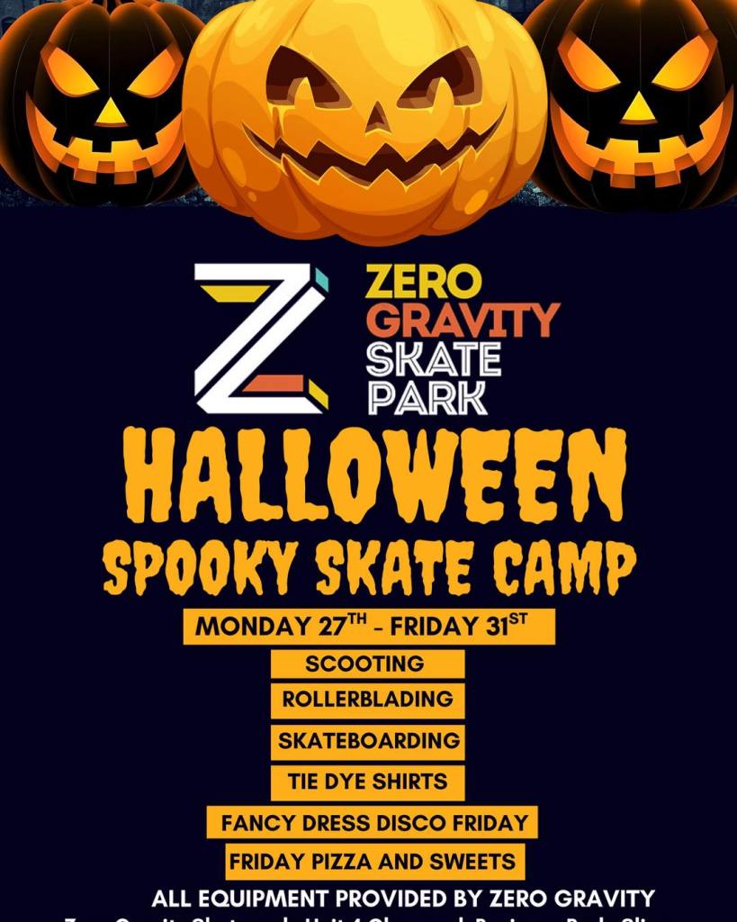 27th Oct. – 31st October. Halloween Camp at Zero Gravity Skate Park are available to book right now, with limited spaces on this one week camp. Book in now to avoid disappointment: https://zerogravityshop.ie/halloween-camp-2025/