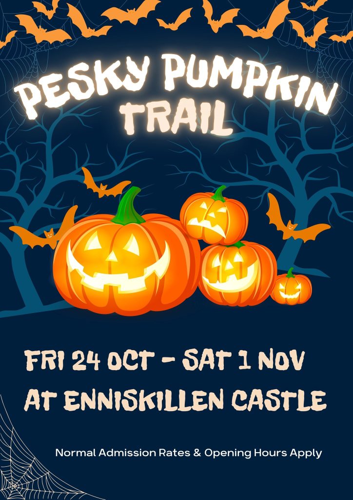 24th – 31st Oct. Track down those Pesky Pumpkins hiding in Enniskillen Castle to solve the hidden clue and claim a Halloween prize. There are other family-friendly activities to do at the Castle too from the Talking Townlands trail to our Hen’s Teeth Challenge. https://www.enniskillencastle.co.uk/event/pesky-pumpkin-trail/