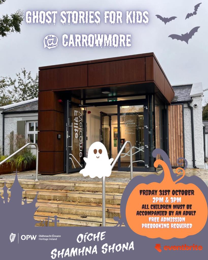 31st October. Come along and hear stories of ghosts, witches and more @ Carrowmore. Suggested age 6 to 14 years. All children must be accompanied. Free – but places must be booked https://www.eventbrite.ie/e/ghost-stories-for-kids-carrowmore-tickets-1857828808979