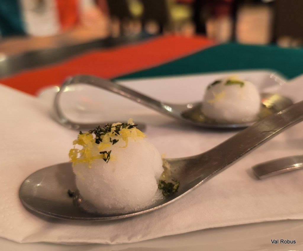 And the meal is finished with a sweet treat – it was a refreshing sorbet in Tequila when we were there.