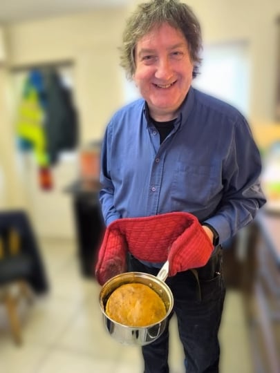 He couldn’t find the bottom of the loose‑bottom baking tin (fitting, really – very on brand for me), so he improvised and baked the whole thing in a saucepan. And it was the sweetest thing – he rarely spends time in the kitchen, so the fact he made the effort made it all the more special.