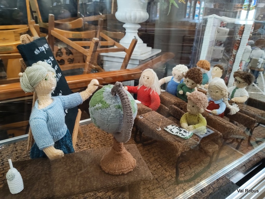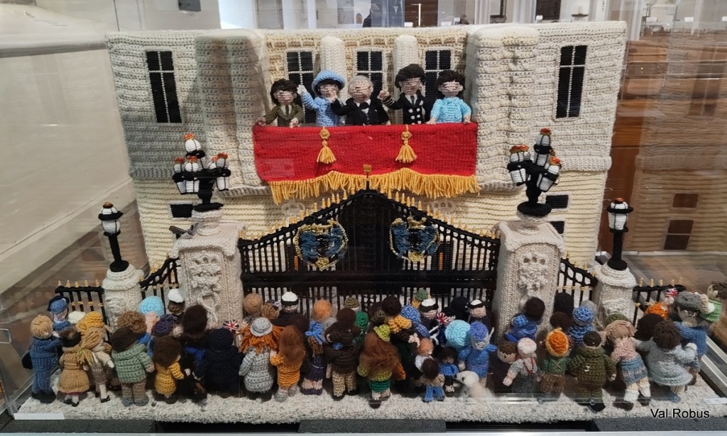The first thing that struck me was the detail. I saw knitted soldiers with miniature helmets, landing craft approaching the beaches, woollen smoke coming from buildings. The attention to detail is just incredible, from tiny cakes and tea cups, to pigeons and corgis at Buckingham Palace.