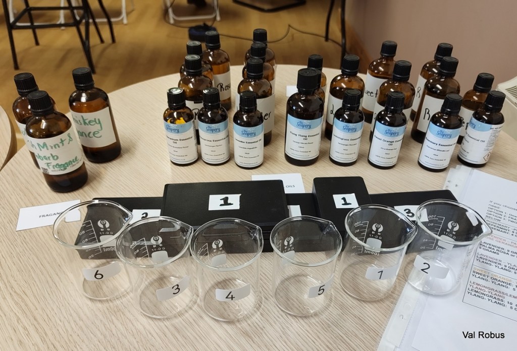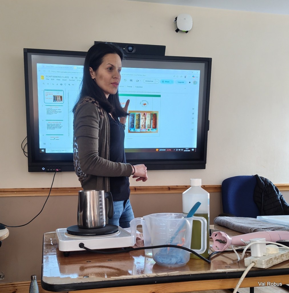 Some people got really creative, adding exfoliating ingredients like rock salt, oats, and poppy seeds. I kept mine fairly simple, but I did go a bit wild with petals on top. For the scent, I chose lemon, and I have to say, it smells amazing… even if it might not win any beauty contests – I didn’t even take a pic of mine! The ones below belong to some of the other participants.