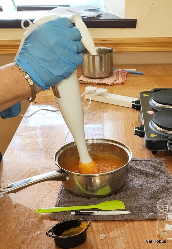 There’s a whole process of heating and cooling the different elements before you even begin mixing. Then comes the blending, which is where it all starts to come together.